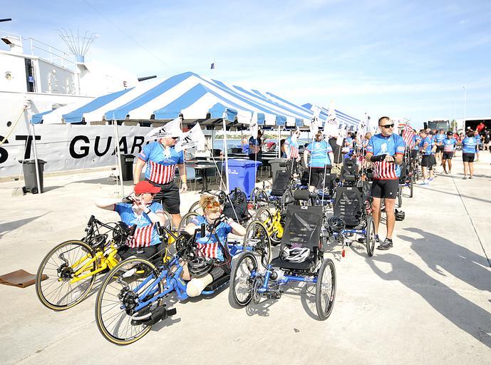 | Keywords: Wounded Warrior Project Soldier Ride 2015 150111-N-YB753-108.jpg en Wounded warriors dismount from bikes at the Truman Waterfront during the annual Soldier Ride Wounded Warrior Project ™s Soldier Ride is an opportunity for wounded service members and veterans to use cycling and the bonds of service in overcoming physical mental or emotional wounds U S Navy photo by Mass Communication Specialist 1st Class Brian Morales/ Released 2015-01-11 Petty Officer 1st Class Brian Morales https //www dvidshub net/image/1722224 150111-N-YB753-108 2015-01-13 10 53 KEY WEST FL US PD-USGov-Military-Navy Wounded Warrior 2015 Images from DoD uploaded by Fæ |