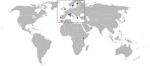 | Keywords: WRC-1976.png Map of World Rally Championship rallies held in 1976 Color coding is black for tarmac events brown for gravel blue for snow/ice and red for mixed surface events 2007-03-27 Josh Baumgartner Josh 16 15 27 March 2007 UTC Public domain 1976 in auto racing World Rally Championship maps |