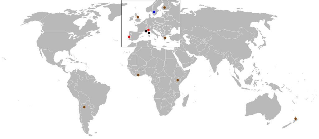 | Keywords: WRC-1983.png Map of World Rally Championship rallies held in 1983 Color coding is black for tarmac events brown for gravel blue for snow/ice and red for mixed surface events 2007-03-27 Josh Baumgartner Josh 16 27 27 March 2007 UTC Public domain World Rally Championship maps 1983 in auto racing |