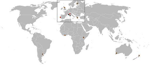 | Keywords: WRC-1990.png Map of World Rally Championship rallies held in 1990 Color coding is black for tarmac events brown for gravel blue for snow/ice and red for mixed surface events 2007-03-27 Josh Baumgartner Josh 16 30 27 March 2007 UTC Public domain 1990 in auto racing World Rally Championship maps |