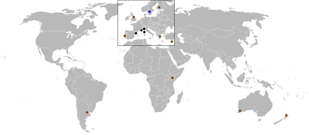 | Keywords: WRC-2000.png Map of World Rally Championship rallies held in 2000 Color coding is black for tarmac events brown for gravel blue for snow/ice and red for mixed surface events 2007-03-27 Josh Baumgartner Josh 16 36 27 March 2007 UTC Public domain World Rally Championship maps |
