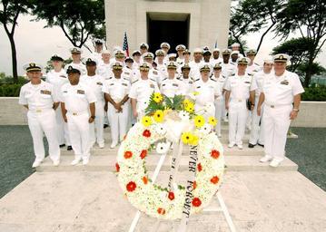 | Keywords: Wreath ceremony 090812-N-QL961-097.jpg en Active duty and retired Sailors pose for a group photo following a wreath laying ceremony at the Manila American Cemetery and Memorial George Washington the Navy's only permanently forward deployed aircraft carrier is on a scheduled port visit to Manila while on her inaugural summer deployment from Fleet Activities Yokosuka Japan supporting security and stability in the Western Pacific ocean George Washington is the first nuclear-powered aircraft carrier to visit Manila in more than 13 years U S Navy photo by Mass Communication Specialist 3rd Class Phillip Pavlovich/RELEASED 2012-09-08 Petty Officer 2nd Class Phillip Pavlovich https //www dvidshub net/image/1577733 090812-N-QL961-097 2014-09-29 15 56 MANILA PH PD-USGov-Military-Navy Fleet Activities Yokosuka Images from DoD uploaded by Fæ |