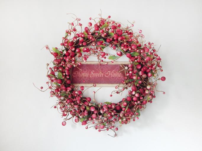 Keywords: wreath home interior decoration relaxation elegant white wall home sweet home inspiring message berry wreath craft