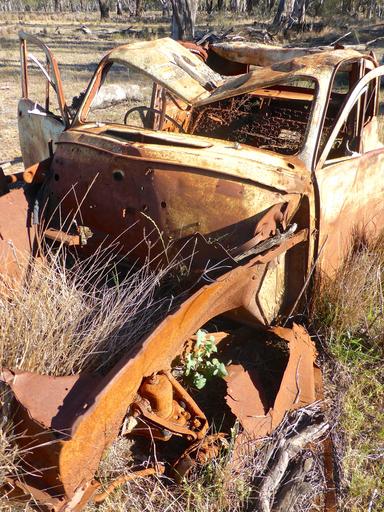 Keywords: wreck abandoned rusty vehicle weathered broken car smashed damaged