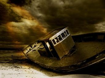 Keywords: wreck boot stranded coast sea mysticism night fog ocean ship shipping lake seafaring adventure twilight fishing fishing activities fisheries fishing industry sky voltage beach bank clouds light ebb