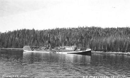| Keywords: Wreck of the steamer MARIPOSA, Fitzhugh Sound, British Columbia, October 8, 1915 (THWAITES 149).jpeg check categories 27 October 2016 1 Photograph Creator John E Thwaites Caption on image S S Mariposa 10-8-15 PH Coll 247 489<br/>Owned by the Alaska Steamship Company the MARIPOSA sustained damage on a rock ledge at the upper end of Fitzhugh Sound She was refloated by the Esquimalt salvage steamer SALVOR towed south and drydocked at the Seattle Construction and Drydock Co on November 15 The passengers were rescued within two hours and landed at Ketchikan Subjects LCTGM Ship accidents--British Columbia Subjects LCSH Mariposa Ship ; Steamboats--British Columbia--Fitz Hugh Sound; Fitz Hugh Sound B C depicted place Canada--British Columbia--Fitz Hugh Sound 1915 Institution University of Washington UWASH-THWAITES-source accession number thwaites 149 PD-old-auto-1923 1940 Information field Order Number THW253 Images from the John E Thwaites Photographs of Alaska Collection to check Steamboats |