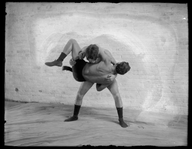 | Keywords: george_eastman_house georgeeastmanhouse wrestling sport men 1900 bw color:rgb_avg=979797 color:rgbavg=979797 vintage wrestling vintagewrestling william m. vander weyde williammvanderweyde wrestlers geh:accession=1974:0056:0235 geh:accession=197400560235 blackandwhite monochrome black and white Accession Number: 1974:0056:0235 Maker: William M. Vander Weyde (American 1871–1929) Title: Wrestling Date: ca. 1900 Medium: negative, gelatin on glass Dimensions: 6.5 x 8.5 George Eastman House Collection General – information about the George Eastman House Photography Collection is available at www.eastmanhouse.org/inc/collections/photography.php. For information on obtaining reproductions go to: www.eastmanhouse.org/flickr/index.php?pid=1977:0144:0050MP. Accession Number: 1974:0056:0235 Maker: William M. Vander Weyde (American 1871–1929) Title: Wrestling Date: ca. 1900 Medium: negative, gelatin on glass Dimensions: 6.5 x 8.5 George Eastman House Collection General – information about the George Eastman House Photography Collection is available at www.eastmanhouse.org/inc/collections/photography.php. For information on obtaining reproductions go to: www.eastmanhouse.org/flickr/index.php?pid=1977:0144:0050MP. |