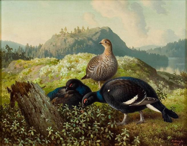 | Keywords: Wright Ferdinand Black Grouses 1872.jpg  en WRIGHT Ferdinand von Black Grouses 1872 <br>Orrar Teeriä Oil on canvas 40x50 cm http //www bukowskis fi/iframe php ino 1 page 31 op showcat p 3 id 50625 ret aWZyYW1lLnBocD9pdGVtcz0zJnBhZ2U9MzEmb3A9c2hvd2NhdCZhbXQ9MjAmcD0yJnN0YXJ0PTAmZGlzcGxheVR5cGU9JmtleXdvcmRzW109d3JpZ2h0Jg Bukowskis International Autumn Auction 138 Creator Ferdinand von Wright 1872 PD-old-100 Black Grouse in art Paintings of birds 1872 paintings Ferdinand von Wright Images from Bukowskis |