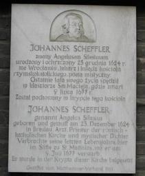 | Keywords: Wroclaw kosciol swMacieja inskrypcja.jpg Wrocław Poland Św Maciej St Matthew church - Johannes Scheffler's inscription 2005-10-30 own assumed Julo Retouched pictures / Bildbearbeitungen Von diesem Bild existieren die folgenden Bildbearbeitungen aus der Bilderwerkstatt Retouched versions of this picture from the german Graphic Lab Image Wroclaw kosciol swMacieja inskrypcja-2 jpg Plaques in Wrocław Angelus Silesius Saint Matthew church in Wrocław | ||||