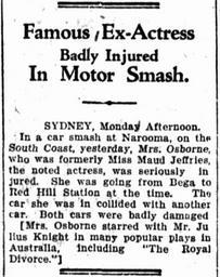 | Keywords: Wrong "Mrs Osborne".jpg en News item in Brisbane newspaper The Daily Standard of Tuesday 22 January 1929 p 8 which wrongly identifies Mrs Elsie Evelyn Osborne 1878-1930 née Dickenson of Redbank Station Jugiong NSW the widow of Benjamin Marshall Osborne as being the former Miss Maud Jeffries -- who was in fact Mrs James Bunbury Nott Osborne of Bowlie also a rural property in NSW at Gundaroo http //trove nla gov au/ndp/del/article/178901436 anonymous a standard news item 1929-01-22 PD-old Maud Jeffries 1869-1946 Unclear-PD-US-old-70 |