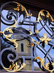 Keywords: wrought iron art forging work antique metal middle ages old historically grid golden grate burglarproof