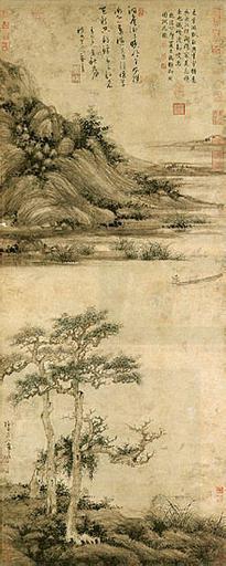 | Keywords: Wu Zhen, Hermit Fisherman on Lake Dongting.jpg Hermit Fisherman on Lake Dongting by Chinese artist Wu Zhen Yuan Dynasty period ink on paper 洞庭漁隱 http //www nigensha co jp/kokyu/en/p09 html 14th century Yuan Dynasty Wu Zhen 1280 1354 PD-old-100 Shan shui paintings in the National Palace Museum Paintings of lakes Lake Dongting Paintings of mountains Paintings of trees PD China Paintings of the Yuan Dynasty 14th-century landscape paintings Location of museum or gallery missing Wu Zhen | ||||
