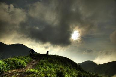 Keywords: wugongshan backpackers sunset dark clouds