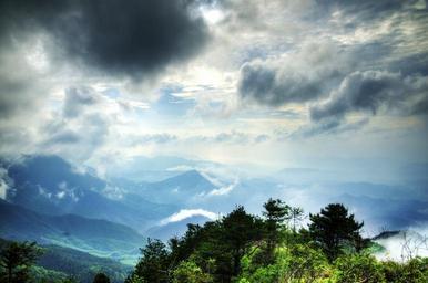 Keywords: wugongshan sunshine dark clouds mountain view trees