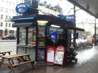 Keywords: Wurren, Fridhemsplan, Stockholm.jpg Wurren Fridhemsplan Stockholm own golonka66 2015-04-17 cc-zero Uploaded from Commons Reloaded 7 Hot dog stands in Sweden
