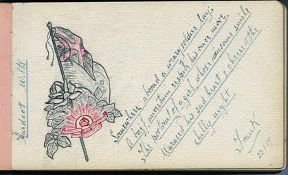 | Keywords: south australia southaustralia brompton frank vernon james frankvernonjames soldier ww1 aif anzac army military autograph book autographbook sketches drawing writing text sketch photo border document He survived the war. His war records: www.aif.adfa.edu.au/showPerson?pid=151730 He survived the war. His war records: www.aif.adfa.edu.au/showPerson?pid=151730 |