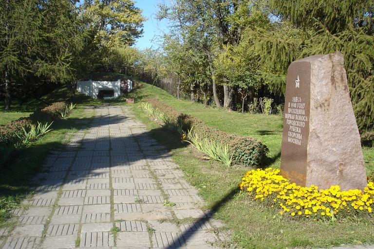 | Keywords: WW2 pillbox and memorial stone at the Obrucheva street, Moscow. Main view.jpg  WW2 pillbox and memorial at the Obrucheva street Moscow near bld 27 It is written in Russian Here in 1941 the city hosted the first strip line of defense in Moscow ДОТ и мемо иальный камень на улице Об учева ЮЗАО  осква  ядос с домом  27  адпись гласит Здесь в 1941 года п оходила пе вая полоса го одского  убежа обо оны  осквы own 2010-10 Zac allan <span class signature-talk >talk</span> Pillbox at the Starokaluzhskoe shosse |