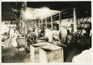 | Keywords: wwi raleigh united states laundry unitedstateslaundry photo border Interior view of the washing room in a warehouse building at the United States Laundry in Raleigh, N.C. Both black and white men and women are pictured working in the room. The laundry cleaned, pressed, and repaired the clothes for military personnel at various military cantonments; Camp Sevier in South Carolina; Camp Greene in Charlotte, N.C.; and Camp Jackson in South Carolina. It operated 24-hours a day, and employed 120 people (undated) [Photograph by: Ellington, Raleigh, N.C.]. From Box 11, North Carolina County War Records, WWI 2, WWI Papers, Military Collection, State Archives of North Carolina. Interior view of the washing room in a warehouse building at the United States Laundry in Raleigh, N.C. Both black and white men and women are pictured working in the room. The laundry cleaned, pressed, and repaired the clothes for military personnel at various military cantonments; Camp Sevier in South Carolina; Camp Greene in Charlotte, N.C.; and Camp Jackson in South Carolina. It operated 24-hours a day, and employed 120 people (undated) [Photograph by: Ellington, Raleigh, N.C.]. From Box 11, North Carolina County War Records, WWI 2, WWI Papers, Military Collection, State Archives of North Carolina. |