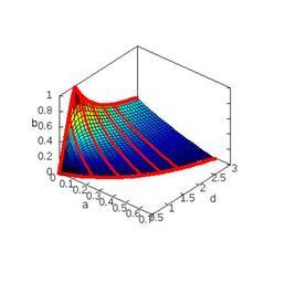| Keywords: Wykb.png en The graph shows the plane which separates the phase space of parameters a b ‹ ‹and d For points beneath the plane of the phase diagrams tend to cycle stable For points above the plane of phase diagrams do go to focal point pl Wykres przedstawia pÅ‚aszczyznÄ™ która oddziela przestrzeÅ„ fazowÄ… parametrów a b i d Dla punktów znajdujÄ…cych siÄ™ pod pÅ‚aszczyznÄ… wykresy fazowe dążą do cyklu stabilnego Dla punktów powyżej pÅ‚aszczyzny wykresy fazowe zdążajÄ… do ogniska own LukashiMiamoto 2011-08-11 wykres z b do wiki clc close all clear all hold on x linspace 0 5 3 30 ; y linspace 0 1 30 ; a d meshgrid x y ; for i 1 30 a1 a 1 i ; d i d i a1 2+4 a1 0 5 - 1+a1 ; endfor b a- 1-a-d 2+4 d 0 5 1+a+d- 1-a-d 2+4 d 0 5 / 2 a ; b x- 1-x-y 2+4 y 0 5 1+x+y- 1-x-y 2+4 y 0 5 / 2 x ; nie dziala b1 1+a+d- 1-a-d 2+4 d 0 5 surface d a b ; a2 linspace 0 5 3 30 ; d1 0; b3 a2- 1-a2-d1 2+4 d1 0 5 1+a2+d1- 1-a2-d1 2+4 d1 0 5 / 2 a2 ; b2 a2- 1-a2 2 0 5 1+a2- 1-a2 2 0 5 / 2 a2 ; a3 a 30 ; d3 d 30 ; z zeros 1 30 ; plot3 d3 a3 z 'r' 'LineWidth' 5 plot3 z' a2 b2 'r' 'LineWidth' 5 a4 a 5 ; d4 d 5 ; b4 b 5 ; plot3 d4 a 5 b4 'r' 'LineWidth' 3 plot3 d 9 a 9 b 9 'r' 'LineWidth' 3 plot3 d 13 a 13 b 13 'r' 'LineWidth' 3 plot3 d 17 a 17 b 17 'r' 'LineWidth' 3 plot3 d 21 a 21 b 21 'r' 'LineWidth' 3 xlim - okreÅ›a zakres x xlim 0 2 xlabel 'a' ylabel 'd' zlabel 'b' axis 0 0 7 0 5 3 0 1 box off view 40 40 print 'wykb png' '-dpng' '-S440 420' Cc-zero Check categories 2011 August 12 pl wikipedia Równanie_Lotki-Volterry 2 Differential equations Ecology |