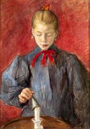 | Keywords: Wyspiański Girl putting out a candle.JPG Artwork Creator Stanisław Wyspiański 1893 oil canvas cm 65 46 Institution National Museum Warsaw Not on view accession number MP 1082 object history credit line SW / Paris 93 signature/location/date http //rynekisztuka pl/2012/07/31/stanislaw-wyspianski-malarz-poeta-projektant/ rynekisztuka pl See below PD-old-100 DEFAULTSORT 1893; Girl putting out a candle Paintings by Stanisław Wyspiański in the National Museum in Warsaw Females with candles in art 1893 paintings Front view portrait paintings of females |