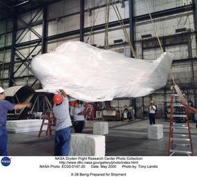 | Keywords: X-38 Being Prepared for Shipment DVIDS713236.jpg en Technicians prepare the X-38 lifting body research vehicle seen here wrapped in a protective material for shipping in May 2000 The X-38 Crew Return Vehicle CRV research project is designed to develop the technology for a prototype emergency crew return vehicle or lifeboat for the International Space Station The project is also intended to develop a crew return vehicle design that could be modified for other uses such as a joint U S and international human spacecraft that could be launched on the French Ariane-5 Booster The X-38 project is using available technology and off-the-shelf equipment to significantly decrease development costs Original estimates to develop a capsule-type crew return vehicle were estimated at more than 2 billion X-38 project officials have estimated that development costs for the X-38 concept will be approximately one quarter of the original estimate Off-the-shelf technology is not necessarily old technology Many of the technologies being used in the X-38 project have never before been applied to a human-flight spacecraft For example the X-38 flight computer is commercial equipment currently used in aircraft and the flight software operating system is a commercial system already in use in many aerospace applications The video equipment for the X-38 is existing equipment some of which has already flown on the space shuttle for previous NASA experiments The X-38's primary navigational equipment the Inertial Navigation System/Global Positioning System is a unit already in use on Navy fighters The X-38 electromechanical actuators come from previous joint NASA U S Air Force and U S Navy research and development projects Finally an existing special coating developed by NASA will be used on the X-38 thermal tiles to make them more durable than those used on the space shuttles The X-38 itself was an unpiloted lifting body designed at 80 percent of the size of a projected emergency crew return vehicle for the International Space Station although two later versions were planned at 100 percent of the CRV size The X-38 and the actual CRV are patterned after a lifting-body shape first employed in the Air Force-NASA X-24 lifting-body project in the early to mid-1970s The current vehicle design is base lined with life support supplies for about nine hours of orbital free flight from the space station It's landing will be fully automated with backup systems which allow the crew to control orientation in orbit select a deorbit site and steer the parafoil if necessary The X-38 vehicles designated V131 V132 and V-131R are 28 5 feet long 14 5 feet wide and weigh approximately 16 000 pounds on average The vehicles have a nitrogen-gas-operated attitude control system and a bank of batteries for internal power The actual CRV to be flown in space was expected to be 30 feet long The X-38 project is a joint effort between the Johnson Space Center Houston Texas JSC Langley Research Center Hampton Virginia LaRC and Dryden Flight Research Center Edwards California DFRC with the program office located at JSC A contract was awarded to Scaled Composites Inc Mojave California for construction of the X-38 test airframes The first vehicle was delivered to the JSC in September 1996 The vehicle was fitted with avionics computer systems and other hardware at Johnson A second vehicle was delivered to JSC in December 1996 Flight research with the X-38 at Dryden began with an unpiloted captive-carry flight in which the vehicle remained attached to its future launch vehicle Dryden's B-52 008 There were four captive flights in 1997 and three in 1998 plus the first drop test on March 12 1998 using the parachutes and parafoil Further captive and drop tests occurred in 1999 In March 2000 Vehicle 132 completed its third and final free flight in the highest fastest and longest X-38 flight to date It was released at an altitude of 39 000 feet and flew freely for 45 seconds reaching a speed of over 500 miles per hour before deploying its parachutes for a landing on Rogers Dry Lakebed In the drop tests the X-38 vehicles have been autonomous after airlaunch from the B-52 After they deploy the parafoil they have remained autonomous but there is also a manual mode with controls from the ground NASA Identifier NIX-EC00-0147-20 2009-09-23 Glenn Research Center https //www dvidshub net/image/713236 713236 2012-10-10 17 24 WASHINGTON DC US PD-USGov Langley Research Center Images from DoD uploaded by Fæ NASA X-38 |