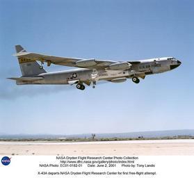 | Keywords: X-43A departs NASA Dryden Flight Research Center for first free-flight attempt. DVIDS729056.jpg en The first X-43A hypersonic research aircraft and its modified Pegasus booster rocket were carried aloft by NASA's NB-52B carrier aircraft from Dryden Flight Research Center at Edwards Air Force Base Calif on June 2 2001 for the first of three high-speed free flight attempts About an hour and 15 minutes later the Pegasus booster was released from the B-52 to accelerate the X-43A to its intended speed of Mach 7 Before this could be achieved the combined Pegasus and X-43A stack lost control about eight seconds after ignition of the Pegasus rocket motor The mission was terminated and explosive charges ensured the Pegasus and X-43A fell into the Pacific Ocean in a cleared Navy range area A NASA investigation board is being assembled to determine the cause of the incident Work continues on two other X-43A vehicles the first of which could fly by late 2001 Central to the X-43A program is its integration of an air-breathing scramjet engine that could enable a variety of high-speed aerospace craft and promote cost-effective access to space The 12-foot unpiloted research vehicle was developed and built for NASA by MicroCraft Inc Tullahoma Tenn The booster was built by Orbital Sciences Corp at Chandler Ariz The X-43A flights are the first actual flight tests of an aircraft powered by a scramjet engine capable of operating at hypersonic speeds above Mach 5 or five times the speed of sound Some 90 minutes after takeoff the Pegasus will launch from a B-52 rocketing the X-43A to Mach 7 at 95 000 feet altitude or Mach 10 at 105 000 feet altitude The X-43A will be powered by its revolutionary air-breathing supersonic-combustion ramjet or scramjet engine The X-43A will then fly a pre-programmed trajectory conducting aerodynamic and propulsion experiments as it descends until it splashes into the Pacific Ocean NASA Identifier NIX-EC01-0182-01 2009-09-23 Glenn Research Center https //www dvidshub net/image/729056 729056 2012-10-17 15 25 WASHINGTON DC US PD-USGov Aircraft at Edwards Air Force Base Images from DoD uploaded by Fæ Boeing X-43 NASA NB-52B |