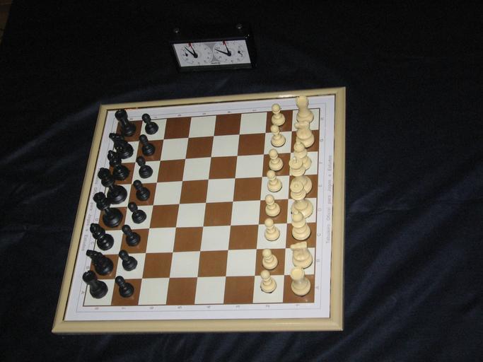 Keywords: Xadrez inicial 3.jpg A sample of official size chess pieces in the starting position on a board with algebraic notation markings A chess clock is nearby own 2007-03-14 Luis Dantas Chess sets Files by User Luis Dantas Taken with Canon PowerShot A520 Chessboards |