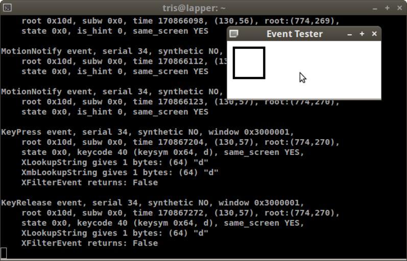 | Keywords: Xev command.png Running the xev command on a GNU/Linux operating system Looks like I moved the cursor around and hit d I took the screenshot 2013-04-28 Palosirkka <span class signature-talk >talk</span> 21 17 27 April 2013 UTC Cc-zero Screenshots of free software |