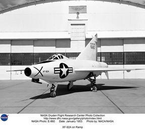 | Keywords: XF-92A on Ramp DVIDS682911.jpg en This NACA High-Speed Flight Research Station photograph of the XF-92A was taken at the South Base of Edwards Air Force Base The photograph shows the pitot-static probe used to measure airspeed Mach number and altitude mounted on a noseboom protruding from the aircraft's nose engine inlet Also attached to the pitot-static-probe portion of the noseboom are flow direction vanes for sensing the aircraft's angles of attack and sideslip The Convair XF-92A aircraft was powered by a Allison J33-A turbojet engine with an afterburner and was unique in having America's first delta wing The delta wing's large area thin airfoil cross section low weight and structural strength made this design a promising combination for a supersonic airplane The Consolidated Vultee Aircraft Corporation Convair XF-92A Dart was America's first delta wing aircraft It was built as a test bed for a proposed interceptor that never materialized The XF-92A was then continued to test the delta-wing concept The delta wing's large area 425 square feet thin airfoil cross section low weight and structural strength made a great combination for a supersonic aircraft The aircraft was powered by an Allison J33-A-29 turbojet engine with an afterburner Convair and the U S Air Force flew the XF-92A from 1948 to 1953 After the Air Force's plans for an interceptor failed to materialize the NACA High-Speed Flight Research Station which had supplied engineering instrumentation and operational assistance to the Air Force during its flights took over the flight test program in 1953 A Scott Crossfield flew all 25 NACA flights of the NACA's XF-92A program over a six-month test period The original XF-92A ship had a severe pitch-up problem but was tested with different wing-fence combinations to gather data on their contribution to solving that problem The pilot also reported that the aircraft was sluggish and underpowered Besides validating the thin delta wing principle the XF-92A played a major role in supporting the development of the Convair F-102A interceptor the Air Force's first attempt at an all-weather supersonic interceptor In 1953 the XF-92A experienced a landing gear failure on rollout after landing at the NACA High-Speed Research Station and the aircraft was retired The single-place XF-92A airplane had a delta wing swept at 60 degrees It was 48 2 feet long had a 31 3-foot wingspan and was 17 5 feet high at the tip of the vertical stabilizer It was controlled by a conventional rudder and full-span elevons that functioned as elevators and ailerons NASA Identifier NIX-E-860 2009-09-23 Glenn Research Center https //www dvidshub net/image/682911 682911 2012-10-10 10 38 WASHINGTON DC US PD-USGov Aircraft at Edwards Air Force Base Convair XF-92 Images from DoD uploaded by Fæ |