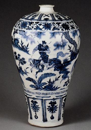 | Keywords: Xiao He chases Han Xin under the moonlight.jpg zh 蕭何 下追韓信梅瓶 南京市博物館藏 高44 1 口徑5 5 腹徑28 4 底徑13cm 景德鎮窯燒 瓷質,胎質潔白細密, 花呈色穩定,白釉純淨, 明度極高, 花系用 口蘇泥勃 料 無蓋,小口,口沿平厚,頸短 細,平肩,肩以下收斂,脛部瘦長,近底部外撇,平底 南京市博物馆 景德鎮窯 元 明 (約14世 ) 1959年南京江寧縣殷巷將軍山沐英墓出 Xiao He Blue and white porcelain Meiping Porcelains of the Yuan Dynasty Jingdezhen ware Porcelain of China in Nanjing Museum Jiangning District | ||||