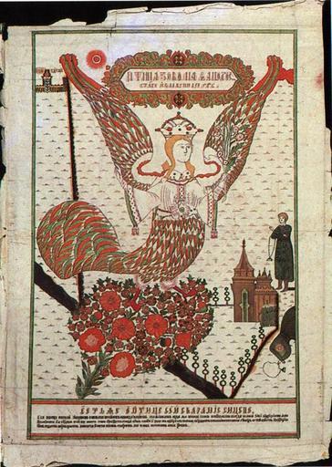 | Keywords: Алконост ГИМ XIX.jpg  ru Райская птица Алконост Вто ая половина 19 века  еизвестный художник Че нила темпе а 88x65  азвание в ка туше «Птица зовомая Алконост святаго и блаженнаго  ая» Внизу заглавие «Есть же о птице сей сказание сицево»  иже текст в 3 ст оки «Сия птица  айской Алконост близь  ая п ебывает некогда и на Еф ате  еке бывает егда же внекий глас испущает тогда и самой себе не ощущает а кто им  адость возвещает И многая благая » П иоб етено «на то гу» в 1904 г К т адиционному изоб ажению самого Алконоста добавлены некото ые элементы  ассказа о человеке уми ающем от пения птицы en Alkonost century 19 http //www bibliotekar ru/rusLubok/87 htm bibliotekar ru author Custom license marker 2013 06 13 PD-Art-100 Uploaded with UploadWizard Alkonost Engravings in the Moscow State Historical Museum |