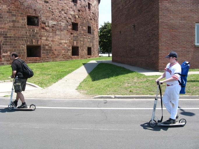 | Keywords: Xootrs at Williams jeh.JPG en Two en Xootrs in use at en Castle Williams on a sunny midday June 7 2008 Replaced for the Wikipedia article by Image Mama Xootr 34 jeh JPG August 2008 own Jim henderson 2008-06-07 40 41 567 0 N 74 1 19 0 W heading SE Kick scooters Castle Williams |