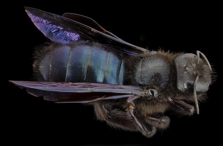 MAKE A MEME View Large Image Xylocopa from Kyrgyzstan with shimmering dark iridescence of wing and abdomen. ~~~...{{{{{{0}}}}}}~~~... All photographs are public domain, feel free to download and use as you wish. Photography Information: Canon Mark II 5D, Zerene ...