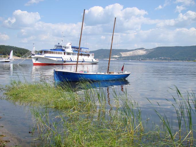 Keywords: yacht mast water parking marina m v ladder river volga grass in the water cane sky clouds summer