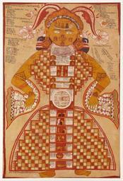 | Keywords: Yantra Painting - Google Art Project.jpg commons date commons medium commons dimensions commons institution commons location commons references commons object_history commons exhibition_history commons credit_line commons inscriptions commons notes commons accession_number commons source commons permission commons other_versions commons zoom core title Yantra Painting core creator Unknown core date dateCreated 1700/1800 core format w93 x h139 cm Complete core type Painting core rights http //mnantropologia mcu es/ core relation http //ceres mcu es/pages/Main idt 25564 inventary CE18633 table FMUS museum MNA core format medium Gouache silk c-053bddb4 customtext cultural_context India c-053bddb4 location purchase India c-053bddb4 customtext subject Beliefs and ritual c-053bddb4 customtext notas_sobre_el_objeto Esta pintura o yantra representa a Purusha figura cósmica relacionada con el Hinduismo y el Jainismo creencias que tienen su origen en India En el vestido aparecen representados los distintos niveles de la existencia los ascendentes son los estados superiores y los descendentes las experiencias inferiores Los yantras son potenciadores de la energía humana por vía visual y se utilizan para imponer una disciplina a los ojos y a la mente de tal forma que se pueda llegar a la unidireccionalidad del pensamiento que es fundamental para la meditación Al estar acompañado de sílabas sagradas su poder especial se activa componiendo un mantra potenciador de la energía por la vía auditiva El uso de yantras está directamente relacionado con el tantra filosofía que es tanto una experiencia de vida como un método científico por el cual el hombre manifiesta su inherente poder espiritual En la mitad superior izquierda se aprecia la impronta accidental de la mano del artista manchada de pintura roja c-053bddb4 customtext procedencia_source Museo Nacional de Antropología c-053bddb4 customtext cultural_context_extent Complete c-053bddb4 customtext cultural_context_source Museo Nacional de Antropología c-053bddb4 customtext material_extent Complete c-053bddb4 customtext material_source Museo Nacional de Antropología c-053bddb4 customtext measurement_diameter_extent Complete c-053bddb4 customtext measurement_diameter_source Museo Nacional de Antropología c-053bddb4 customtext notas_sobre_el_objeto_extent Complete c-053bddb4 customtext notas_sobre_el_objeto_source Museo Nacional de Antropología c-053bddb4 customtext procedencia_extent Complete c-053bddb4 customtext subject_source Museo Nacional de Antropología c-053bddb4 customtext subject_extent Complete google display_date 1700/1800 google homepage_image TRUE google is_artproject TRUE google is_gigapixel FALSE google is_secured TRUE google partner/id 00000000053bddb4 google picasa_token XoCJl2TpNxJilukVCw_o-ZHwfkE special url_id xwELX0sRg8YNCQ google partner/name Museo Nacional de Antropología Madrid special partner/name_no_lang Museo Nacional de Antropología Madrid PD-old-100-1923 Collections from Asia in the Museo Nacional de Antropología España Google Art Project works by unknown artist yantra |