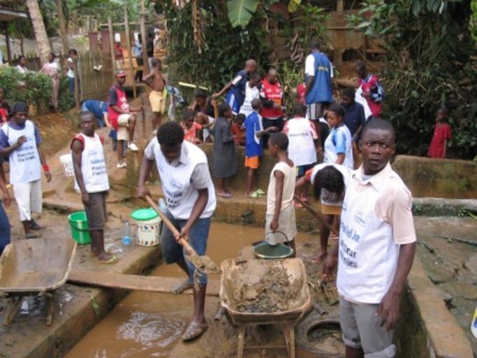 | Keywords: Yaounde clean up kids.jpg Youths of Fondation Conseil Jeunes remove dirt from water during a community clean-up day in Anguissa Yaoundé Cameroon sponsored by the U S Embassy 17 December 2005 From http //yaounde usembassy gov/uploads/images/JBhmulJxELxPiUUdT86Bpw/house_084 jpg here PD-USGov Children of Cameroon Cleaning People of Cameroon Yaoundé Boys of Africa |