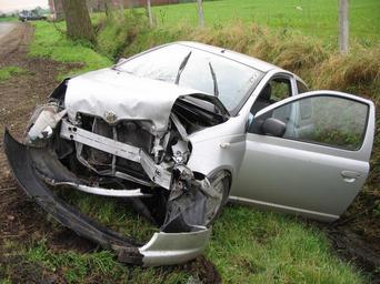 Keywords: Yarkaputt.JPG fr Toyota Yaris 1ère génération au fossé sur une route du nord de la France Own Julien Bertrand 2005-11-23 Crashed Toyota vehicles Toyota Yaris XP10 hatchback Taken with Canon PowerShot A85 Automobile accidents in France