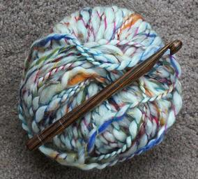 Keywords: yarn variegated crochet bulky craft handmade fiber arts white blue orange colorful