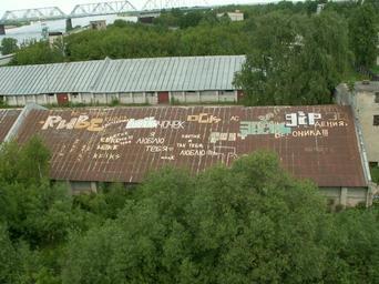 | Keywords: Yaroslavl-graffiti-001.jpg en A building in Yaroslavl with graffiti on the roof ru Г аффити на к ыше здания в Я ославле Фотог афия сделана с Октяб ьского моста заволжская сто она а заднем плане виден железнодо ожный мост че ез Волгу own 2009-05-31 User Monedula Public domain 57 38 31 73 N 39 53 56 35 E region RU_heading NNW Yaroslavl railway bridge Graffiti in Yaroslavl Buildings in Yaroslavl | ||||