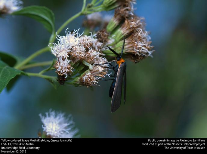 Keywords: lepidoptera erebidae arctiinae cisseps cisseps fulvicollis cissepsfulvicollis c. fulvicollis cfulvicollis yellow-collared scape moth yellowcollaredscapemoth outdoor plant blossom animal insect USA, TX, Travis Co.: Austin Brackenridge Field Laboratory 12-xi-2016 USA, TX, Travis Co.: Austin Brackenridge Field Laboratory 12-xi-2016 |