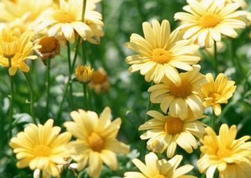 Keywords: flower field yellow grass sky outdoor sunlight meadow natural grow green floral white spring lawn day sunny summer blossom camomile sun daisy chamomile season garden pasture blue plant rural beautiful nature landscape