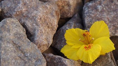 Keywords: yellow flower rocks plant spring petals flora nature blossom