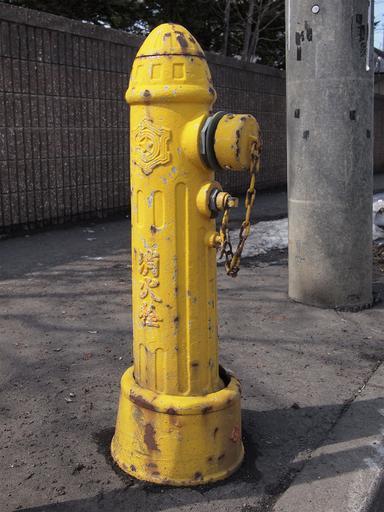 Keywords: Yellow Hydrant in Sapporo.jpg ja 黄色に塗られた 上式消火栓(北海道 幌市) en Yellow painted fire hydrant Sapporo Hokkaido Japan 2012-04-01 13 22 27 own Ozizo cc-zero Uploaded with UploadWizard Fire hydrants in Japan