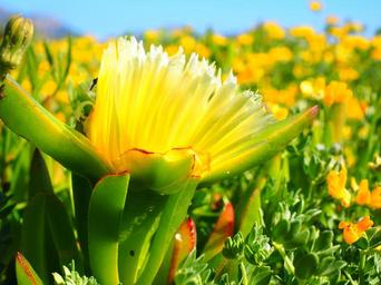 Keywords: yellow ice plant hottentottenfeige flower blossom bloom yellow hottingen dead fig carpobrotis edulis carpobrotus edulis horse fig witches finger carpobrotus succulent plant that belong