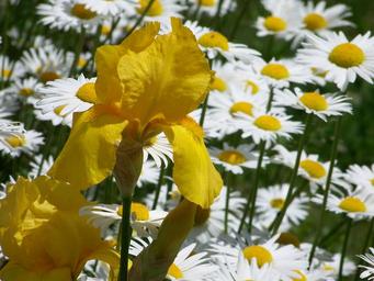 Keywords: yellow iris daisy daisies spring flowers
