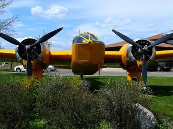 Keywords: yellow plane aircraft airplane aviation old transportation two engine propeller plane