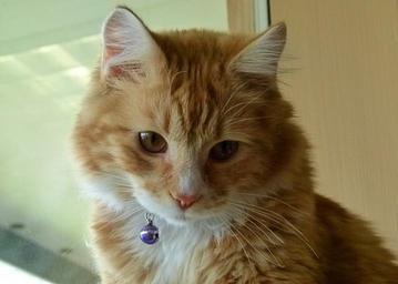Keywords: yellow red kitten cat feline facial portrait watching pet nature animal