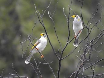 Keywords: yellow throated miners birds perched tree bush nectar australia aggressive loud flocks watching outback wildlife nature