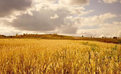 Keywords: yellow wheat field clouds sky golden autumn space