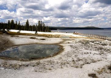 Keywords: yellowstone lake wyoming usa landscape scenery tourist attraction erosion geyser nature volcanic minerals water steam volcanism hot geothermal pond